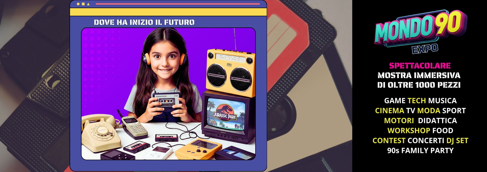 Un viaggio nel tempo con la spettacolare mostra immersiva di oltre 1.000 pezzi che ripercorre la storia della mitica decade. 6 aree interattive, Cinema, Tv, Moda, Game & Tech, Musica, Sporte Ledwall. Un’ immersione sensoriale negli anni '90, un decennio di rivoluzione digitale, cultura pop e innovazione. La mostra celebra musica, TV, cinema, tecnologia, gaming, moda e sport attraverso installazioni interattive, oggetti iconici e ricostruzioni a tema.